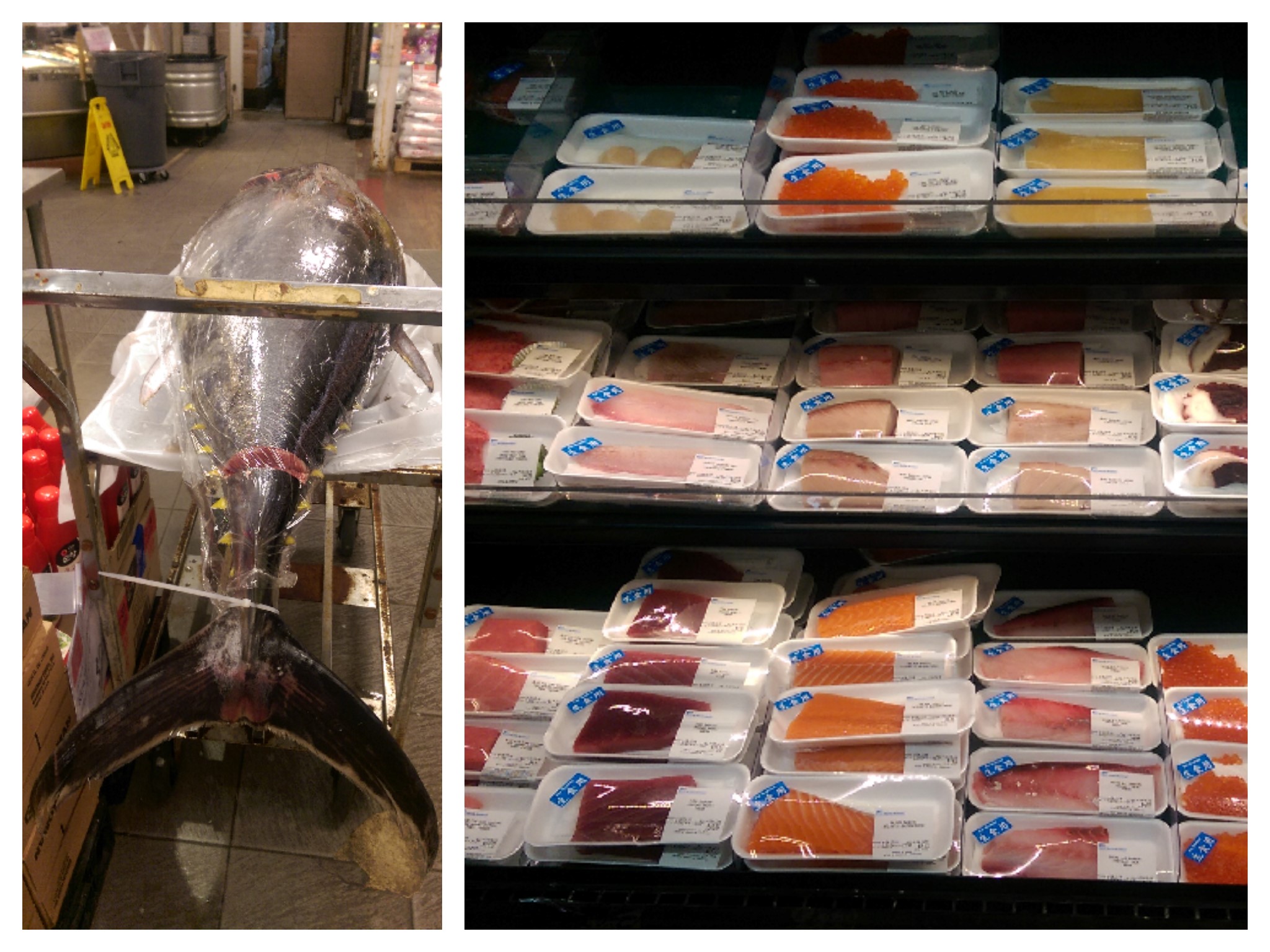 Monster Tuna spotted at H Mart & wonderful variety of Sashimi at Nijiya Japanese Store, Hartsdale NY