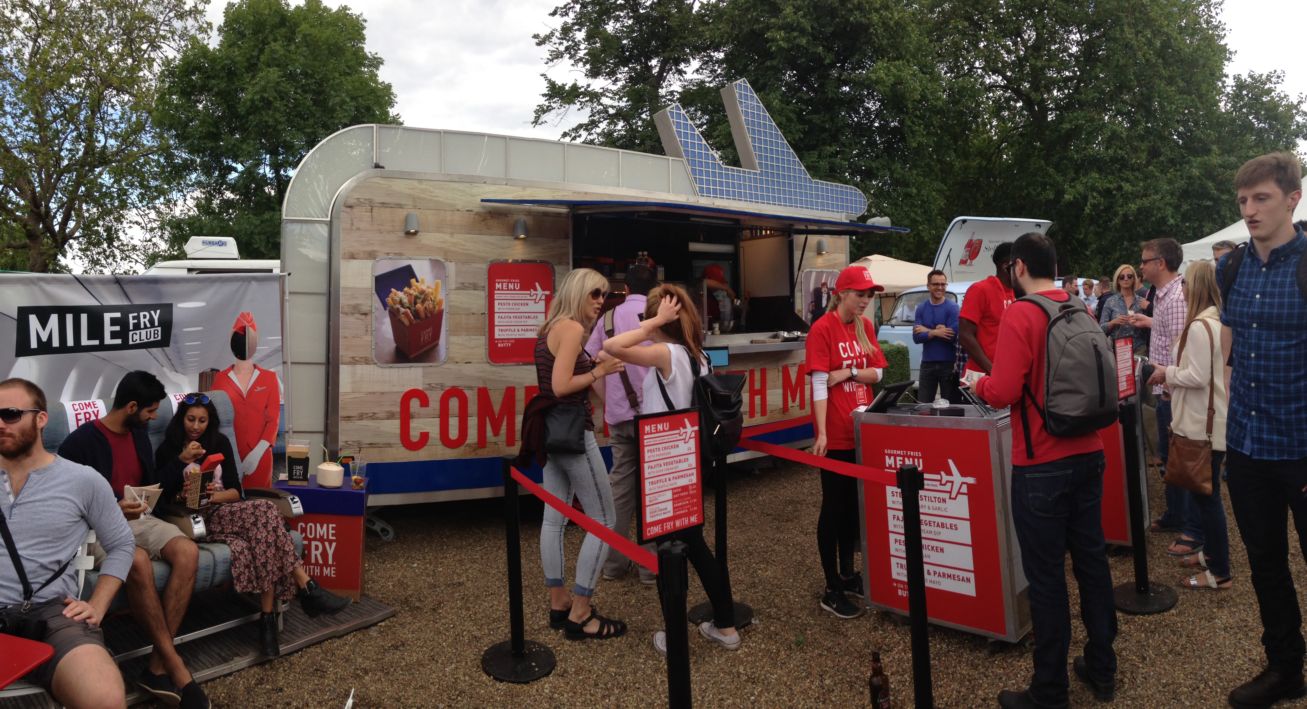 I love writing about food as I get to meet some interesting people, taste stuff, discover the story, and then write about it! My friend Simon enjoyed experiencing the life of a food blogger last Saturday when we hit Foodies Festival Clapham Common big style! Shame we haven’t invented the aroma blog! BBQ featured big style, the US trend continues to grow. Everything marinaded, smoked, slow cooked BBQ heaven! We had to pace ourselves as there were 100’s of things to try. Keeping it savoury we checked out “Come Fry With Me”. Tiffany Plant the founder launched at the Foodies Festival her seasoned fries & dips continuing the trend of “mono eatery”. Her takeaway opens in Covent Garden this October however we and lots of others got a sneak preview.