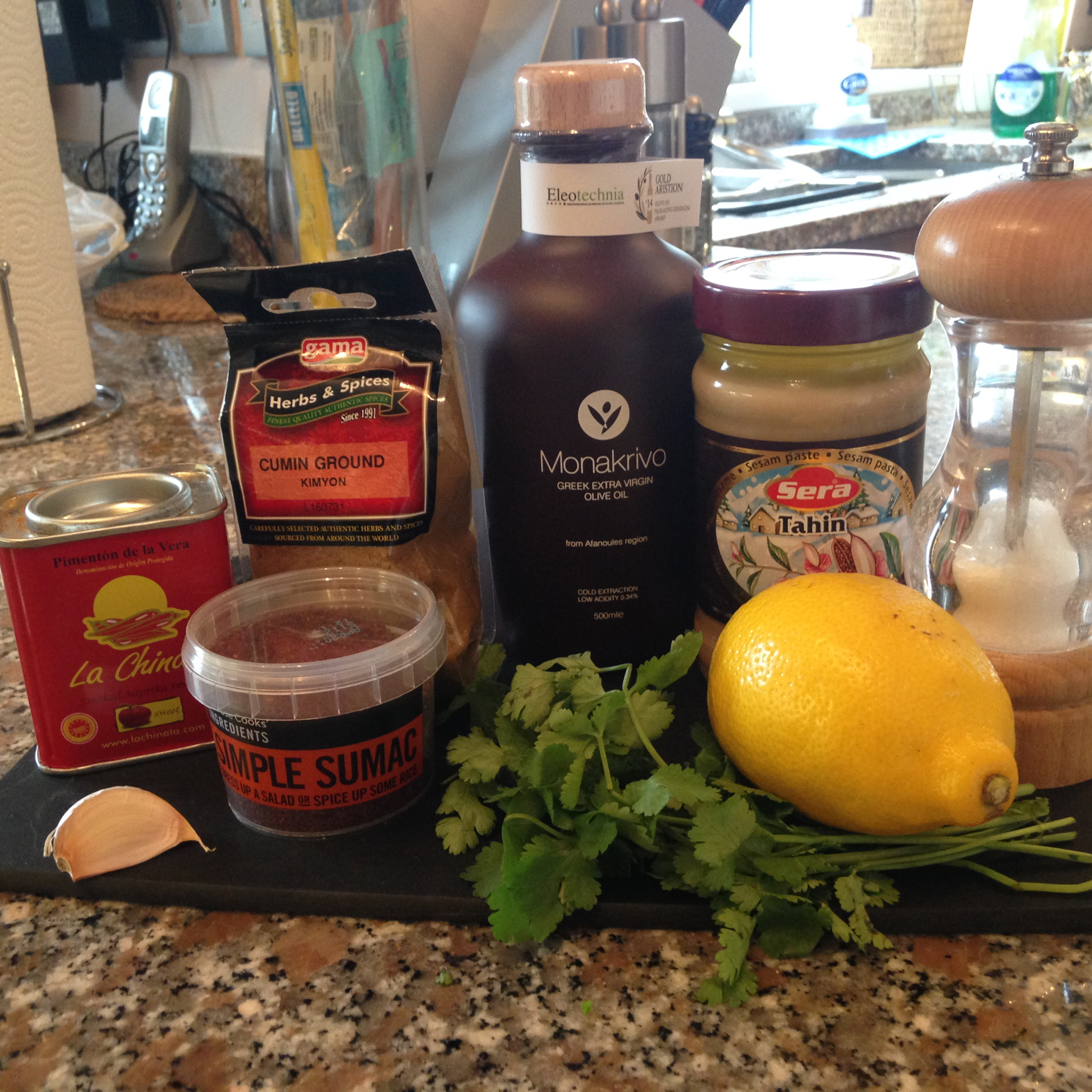 fresh chopped coriander, sumac, smoked paprika for decoration