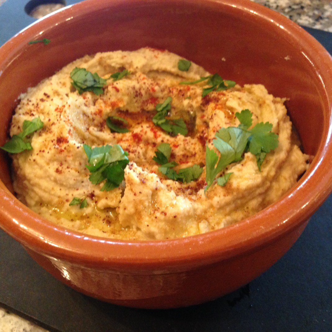 Warm some bread and you are ready to dip. My Greek houmous, a quick delicious starter surely this weekend’s dip off winner?