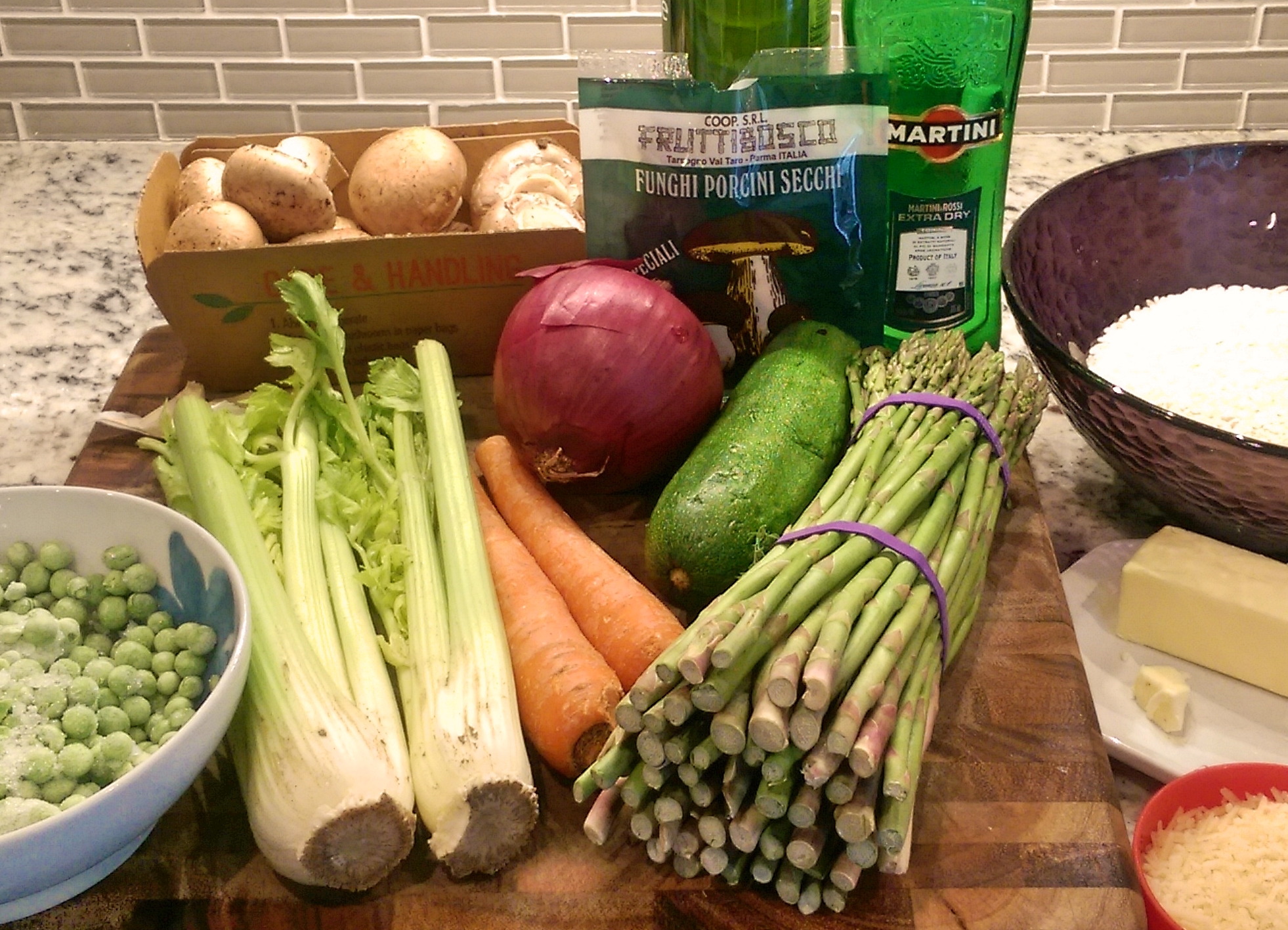 I know it’s not the season for this dish but earlier this week, as the weather here in NY finally turned it’s face to the Fall, I found myself craving a taste of the long lost Spring of 2015. An hour of shopping later, I had assembled the ingredients for a Risotto Primavera