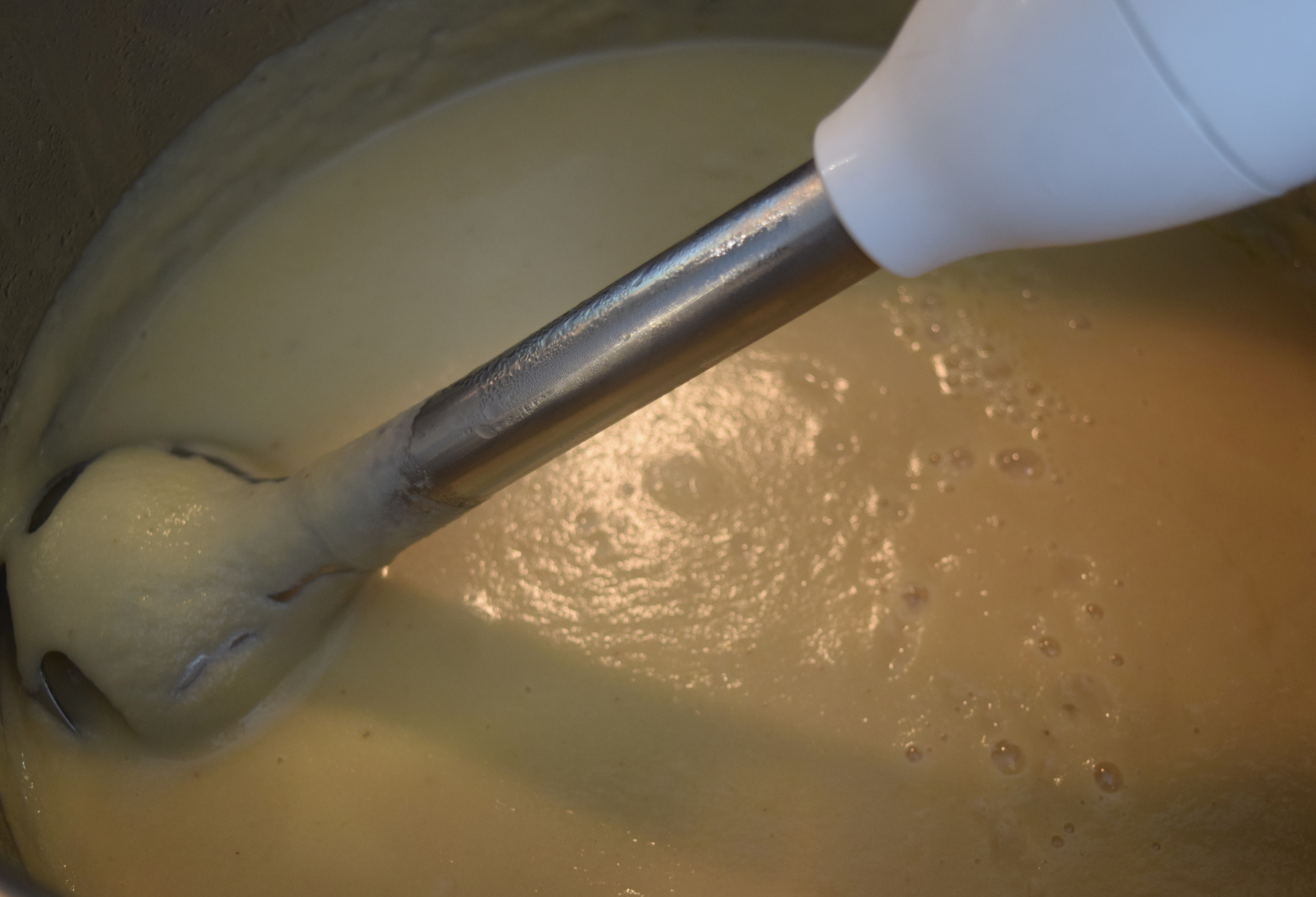 - Blend the soup, cheese and cream with a hand held blender or in a liquidizer until the soup forms a smooth creamy consistency, taste and season as necessary