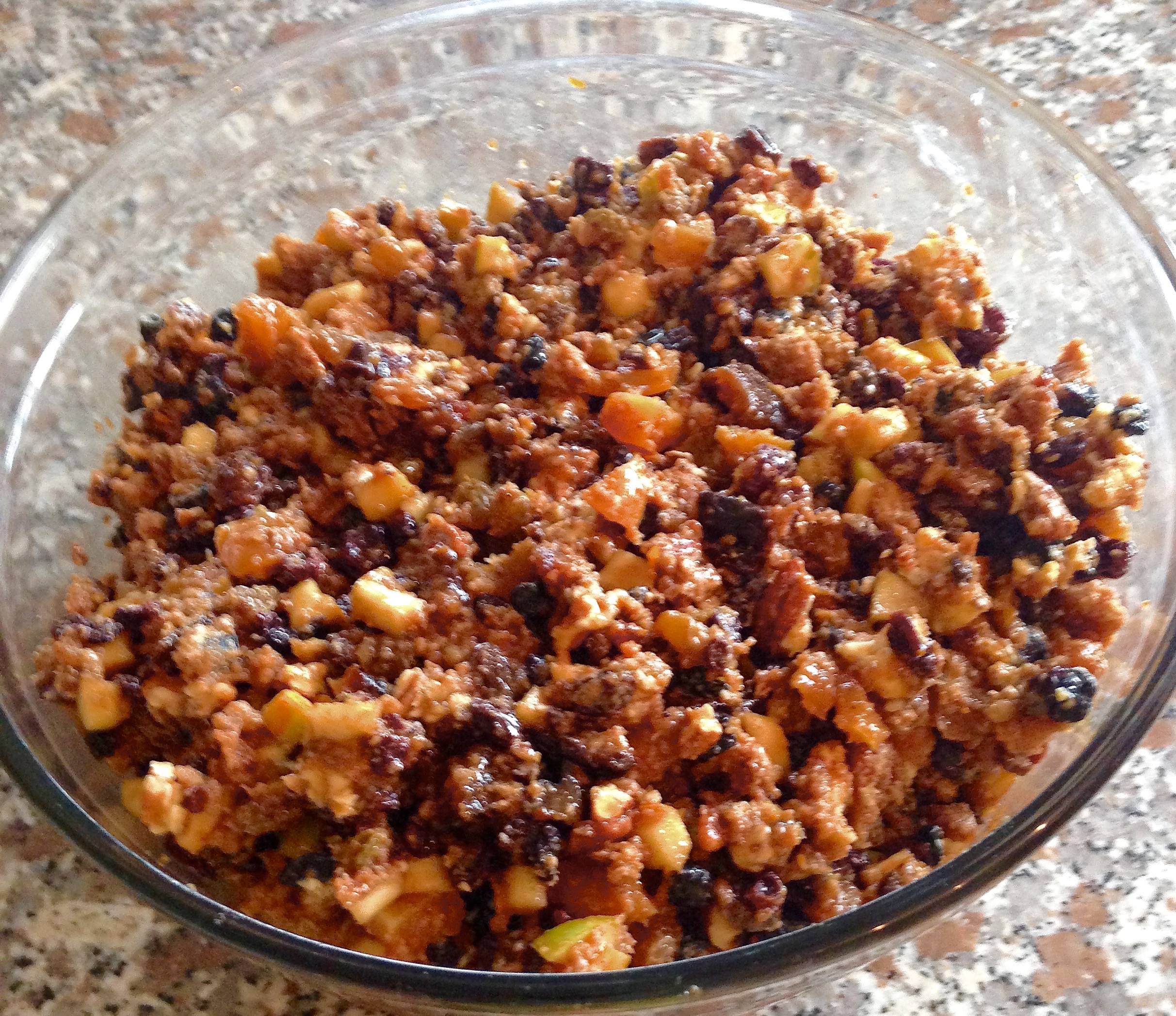 • Mix the fruit, breadcrumbs, sugar, salt & spices