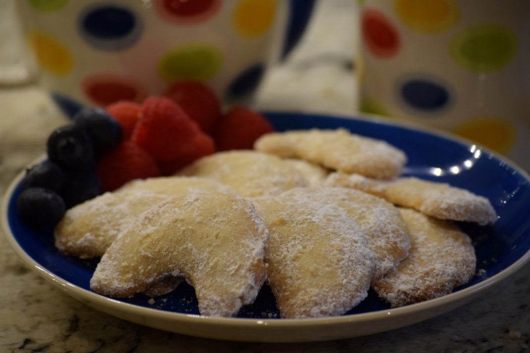 I got hold of the recipe immediately (which is apparently Austrian in origin) and the day after I exited JFK, I baked a pile of them, with a bit of help from my daughter