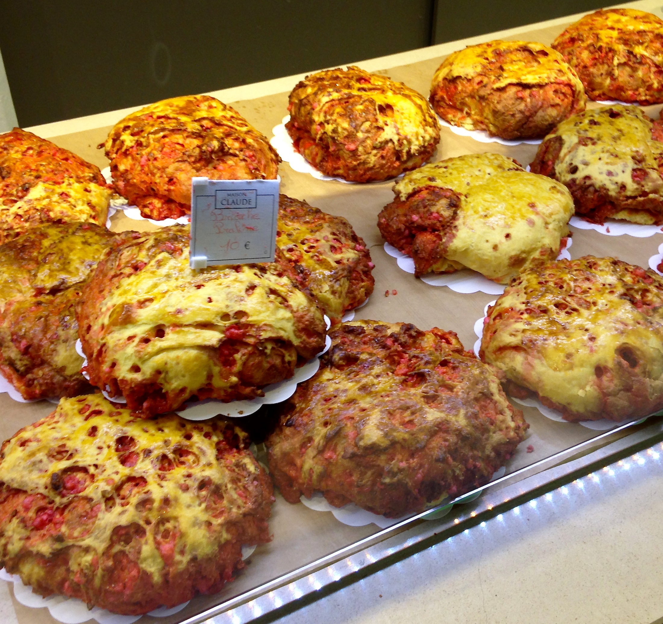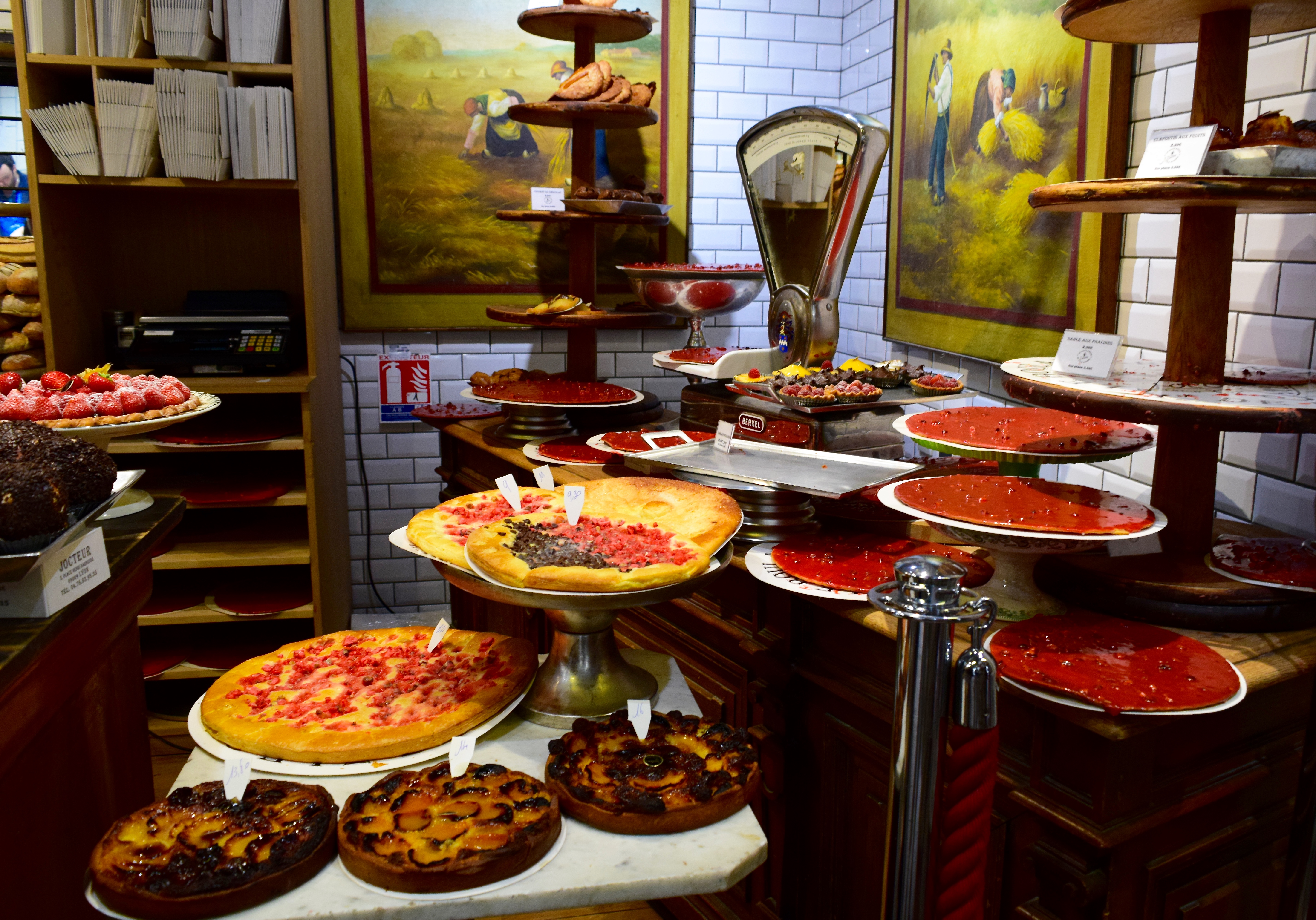 There was always a queue out the door,whenever we walked passed – always a good sign. The display of tarts,breads & brioche made with the rose coloured almond confectionary (praline) was inviting. We tried the croquant aux amandes – a crisp textured slice with pieces of almond & rose praline (similar to a biscotti but not as dry) which tasted nutty & sweet. We also had a slice of the clafoutis aux pommes (apple cake) with caramelised apple on top -fruity, sweet, buttery and delicious.