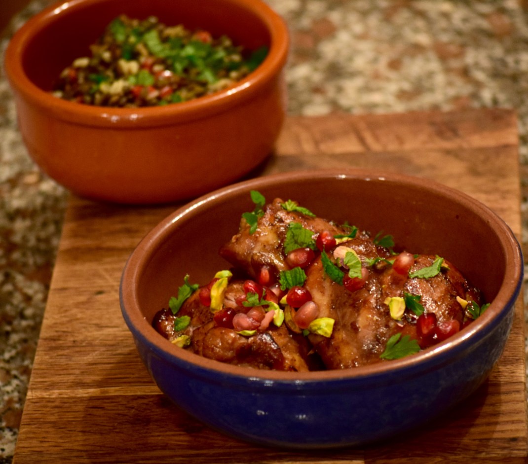 To serve sprinkle with the pistachios or almonds, parsley, mint and pomegranate seeds. This dish goes well with roasted pumpkin, butternut squash, or mixed veg, couscous, wild rice, lentils, or your favourite veggies or salad.