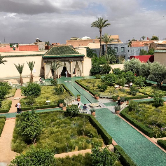 By contrast there were many places to relax whether the Riad’s  roof terrace & a quick dip in the small pool, in a local cafe or the gardens, hidden behind the ancient stone  walls of the Red City. Aziz recommended Le Jardin Secret (Secret Garden), a mid 19th Century palace with both exotic & traditional Islamic botanical gardens. It opened last year after restoration by an award winning British garden designer, a team of Italian architects and expert local builders.