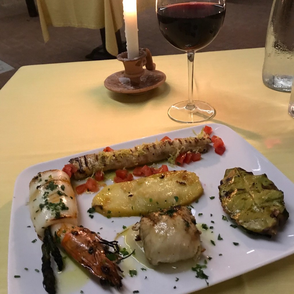 Fantastic fish tasting plate at Giardino Di Bacco,Catania