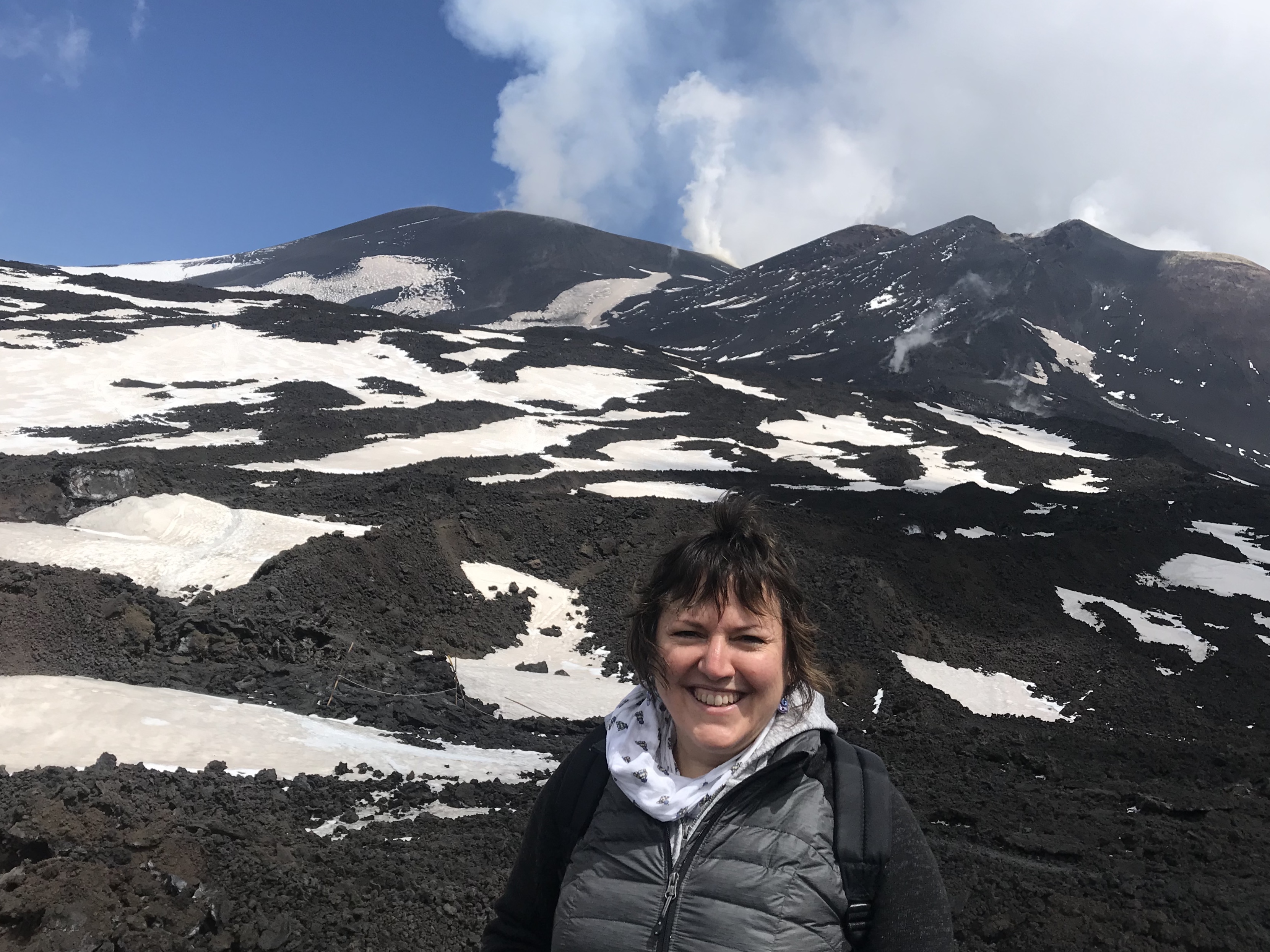 It was delicious with some local cherry tomatoes, speck, mozzarella  and crushed pistachios on top. A perfect Friday night Sicilian supper with a glass of Etna Rosso taking in the atmosphere. I found out afterwards from Claudia, our Cooking School host , that I had eaten in one of the best pizza places in Catania.  I did a walking tour of Etna, visiting a cave and then via a cable car & all terrain vehicle up to  2500 metres .