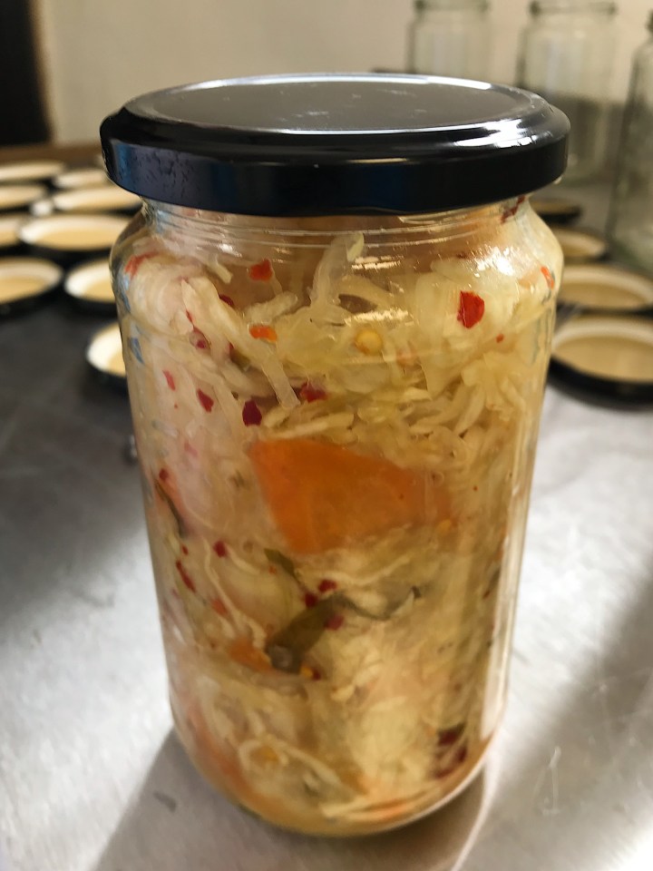Simon and I continue our series of posts on all things fermented and pickled. We have discovered some great new products at the Food Shows we’ve visited in the USA & U.K. At Food Matters Live – a UK Food Show with a Health & Well-being focus, I met up with Jessica Herridge, Founder of Bodkin’s. After trying her tasty range of unpasteurised, fermented vegetables I was interested to find out the story behind their creation. Jessica’s son had experienced digestive health issues after being prescribed multiple doses of antibiotics. She had read about the benefits of gut friendly foods in the diet and began to experiment at home with naturally fermenting different combos of vegetables and spices. Jessica incorporated the probiotic fermented veggie mixes into her son’s diet and after a few months his digestive problems disappeared. ‘Mum’s fermenting again’ with vegetables ready for shredding and jars around the kitchen becoming an ever familiar sight. Family and friends enjoyed the products too. They encouraged Jessica to take the next step and start making more to sell to the local community in Surrey. Inspired by her son’s improved health and the benefits of probiotics Jessica created Bodkins. In May 2019 Bodkins moved to a small production facility on Pierrepont Farm in Frensham, Surrey. The dairy farm had set up a trust to support local food entrepreneurs. Along with Bodkins there is also a small craft brewery and a cheese maker- so a thriving fermented food community! I met Vicky & Anna, the Bodkins production and sales team.