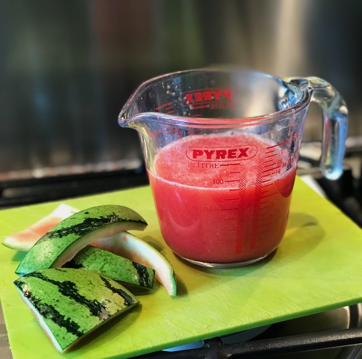 Blitz the watermelon in a food processor or blender until a pulp. Sieve out any remaining seeds.